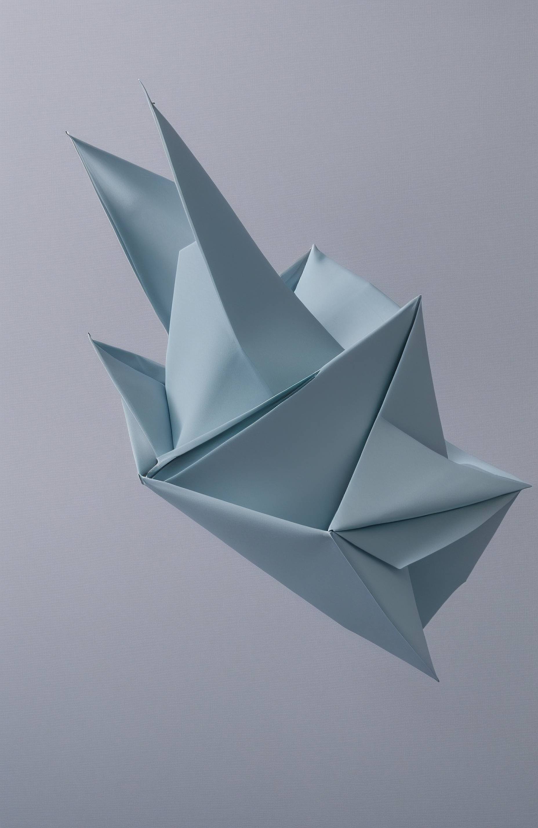 I’ve been working on Paperwork since March of 2023. I was working on it long before I spoke with Seth, and he gave me the green light. I was performing my poetry at different venues, providing little notepads and pencils to participants. After each performance, I asked attendees to write down one word in response to my verse. At one performance, somebody left me an origami swan, and I thought that was so beautiful. I then started experimenting with creating digital origami sculptures using AI that represented the words people were sharing with me.