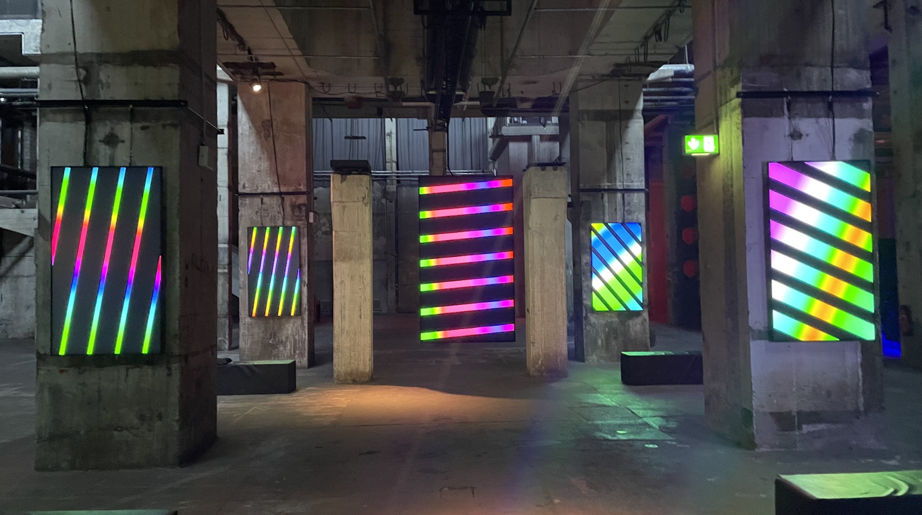 Inflections was my Berlin project, focused on animated color and the visual impact of the project as a whole. The goal of Inflections was to create an architectural installation that would light up Kraftwerk, the massive brutalist power plant where the event took place. The scope of the project felt like an important inflection point in my career, thinking about the expression of my work at scale.