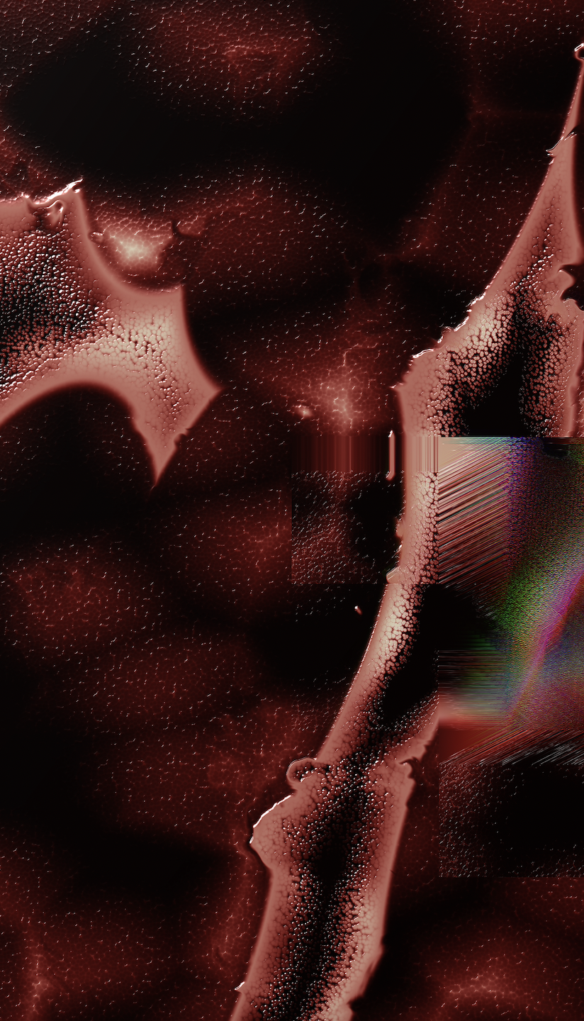 The project I'm working on is called Karne (meat). They're simulations, and I’ve created all the textures with code. I've been working on this concept of meat for a year (not sure why), and studying synthetic meat.